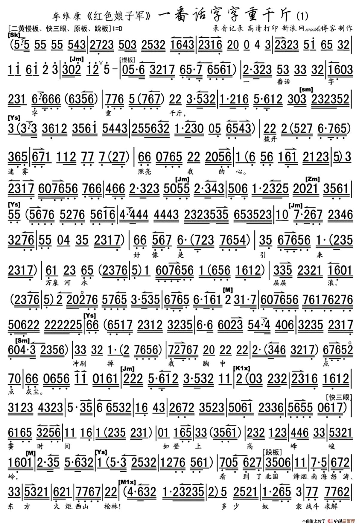 一番话字字重千斤(《红色娘子军》选段、琴谱)
