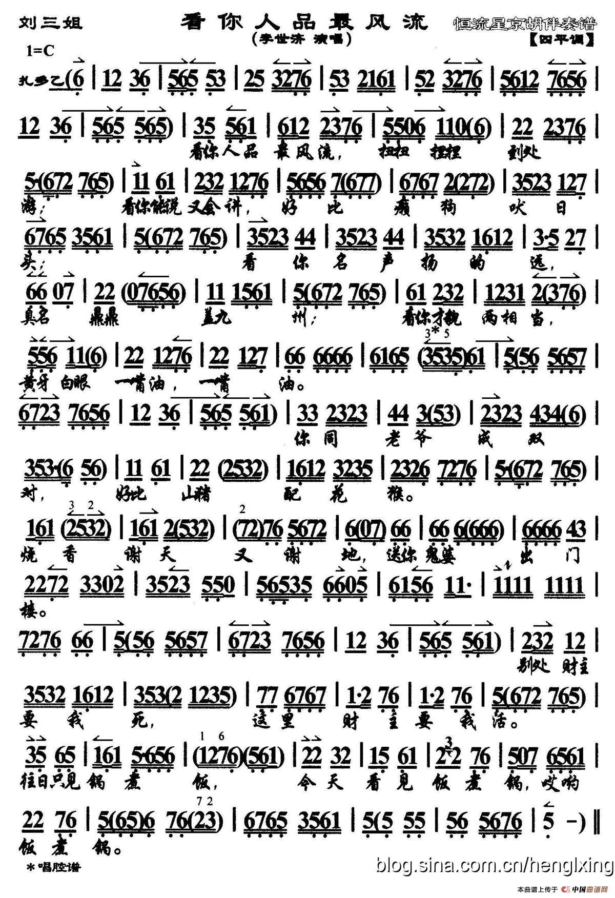 看你人品最风流(《刘三姐》选段、琴谱)