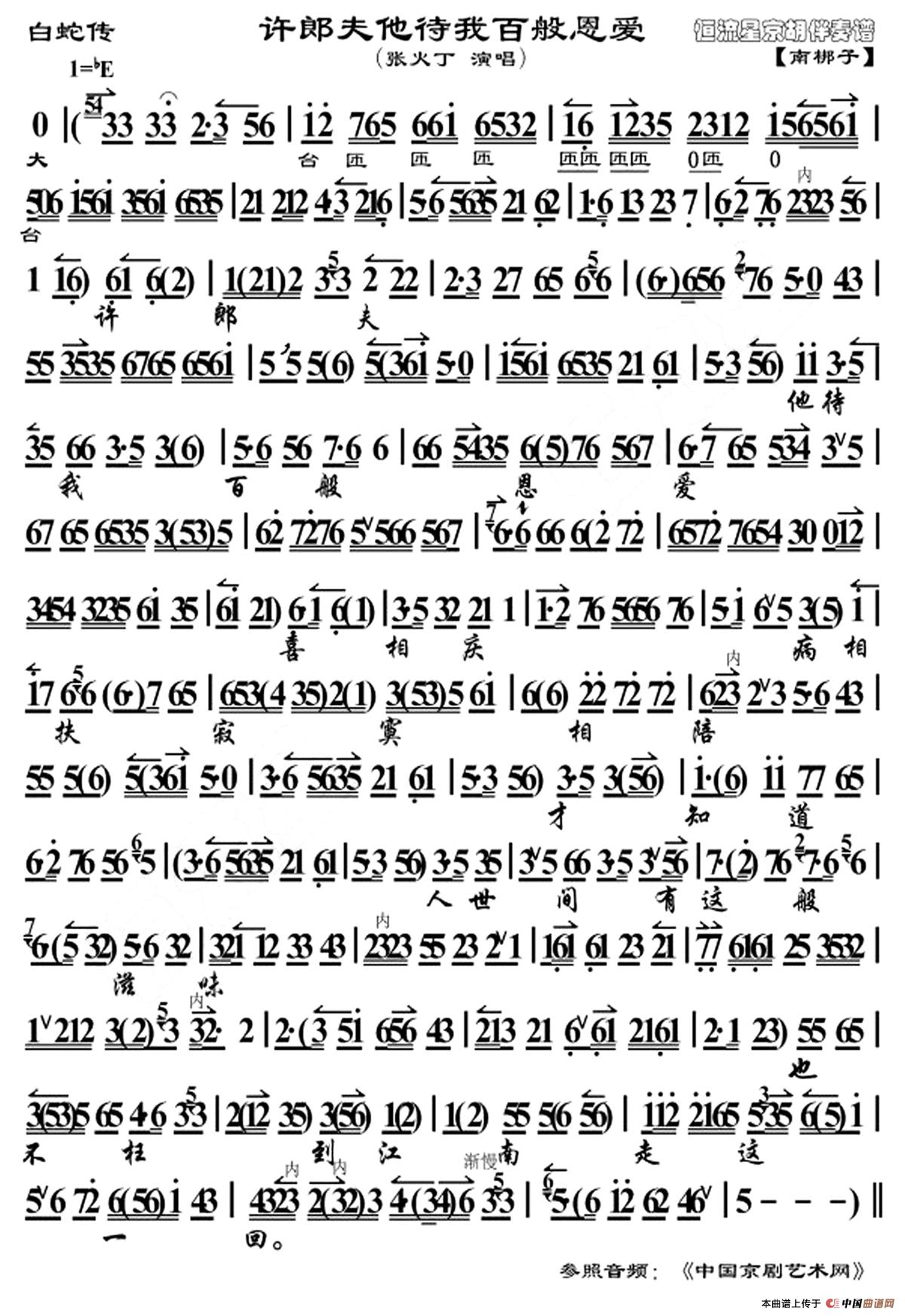 许郎夫他待我百般恩爱(《白蛇传》选段、京胡曲谱)相关五线谱