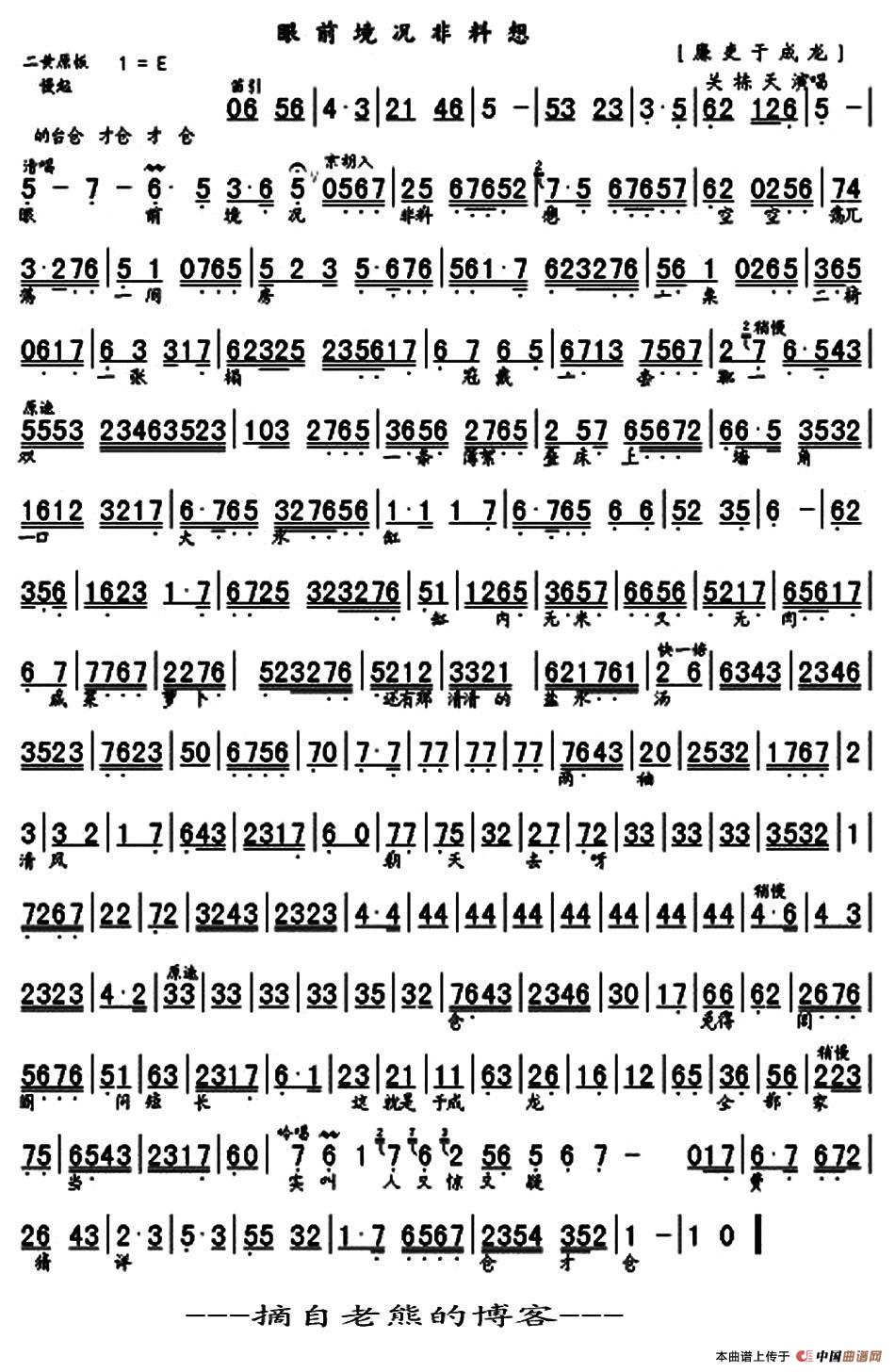 眼前境况非料想(《廉吏于成龙》选段、琴谱)