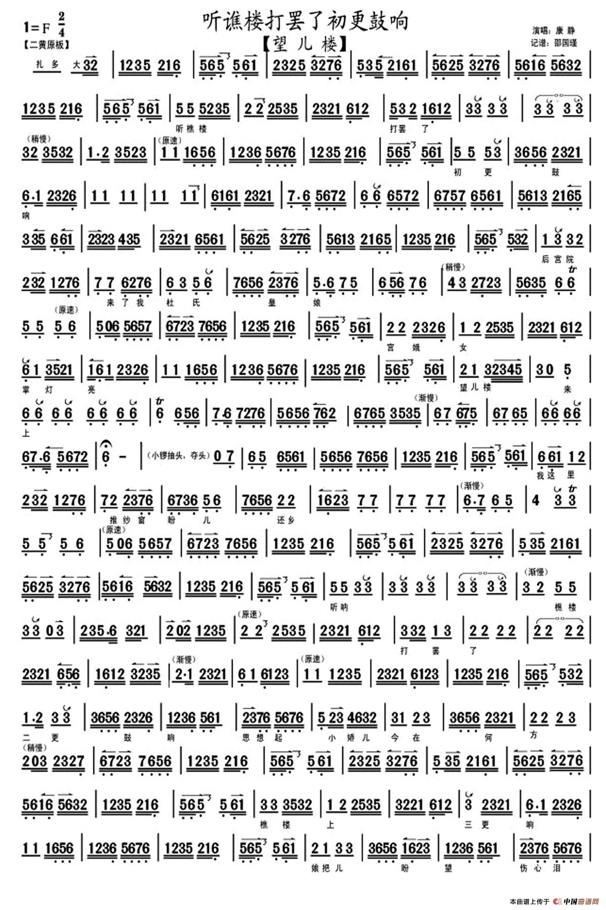 听谯楼打罢了初更鼓响(《望儿楼》康静演唱、邵国瑾记谱版)