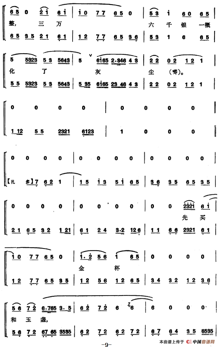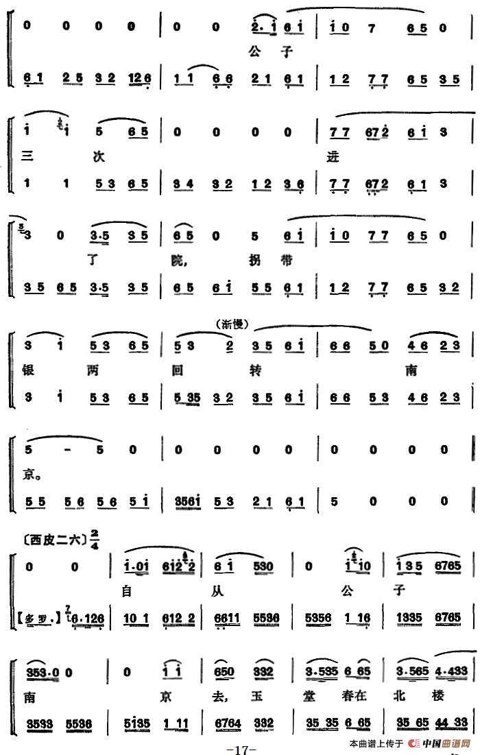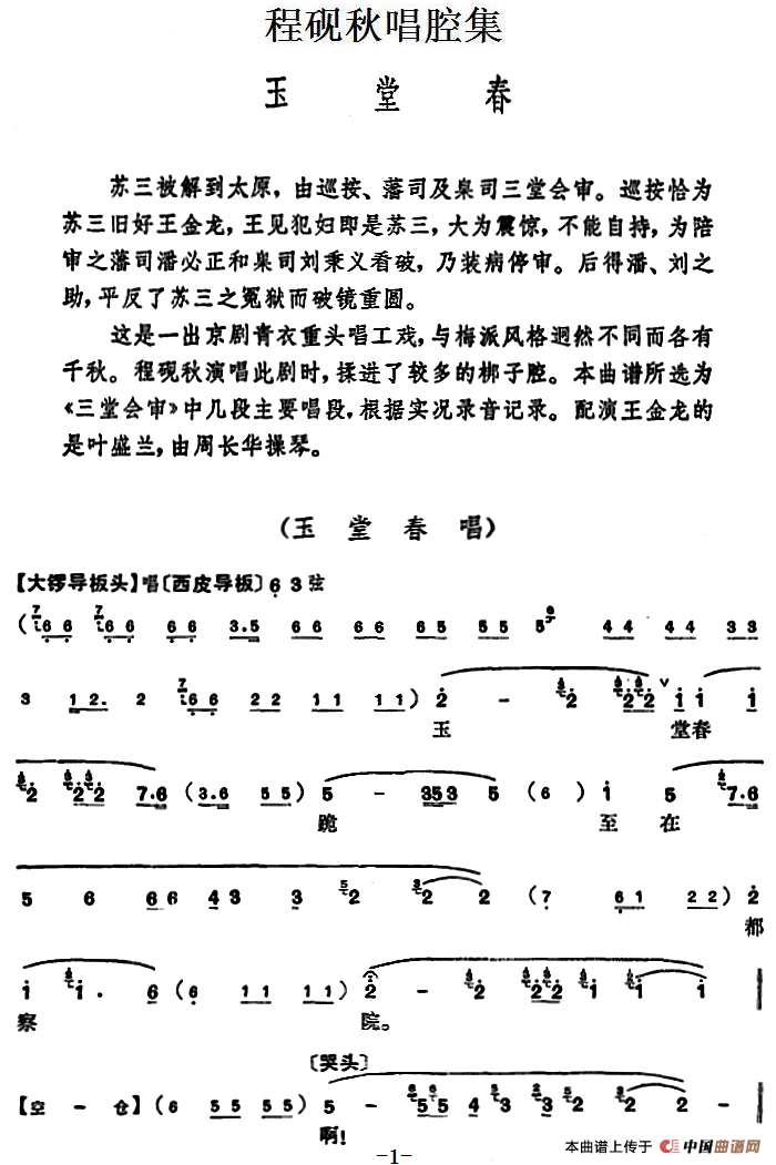 程砚秋唱腔集:《玉堂春》相关五线谱