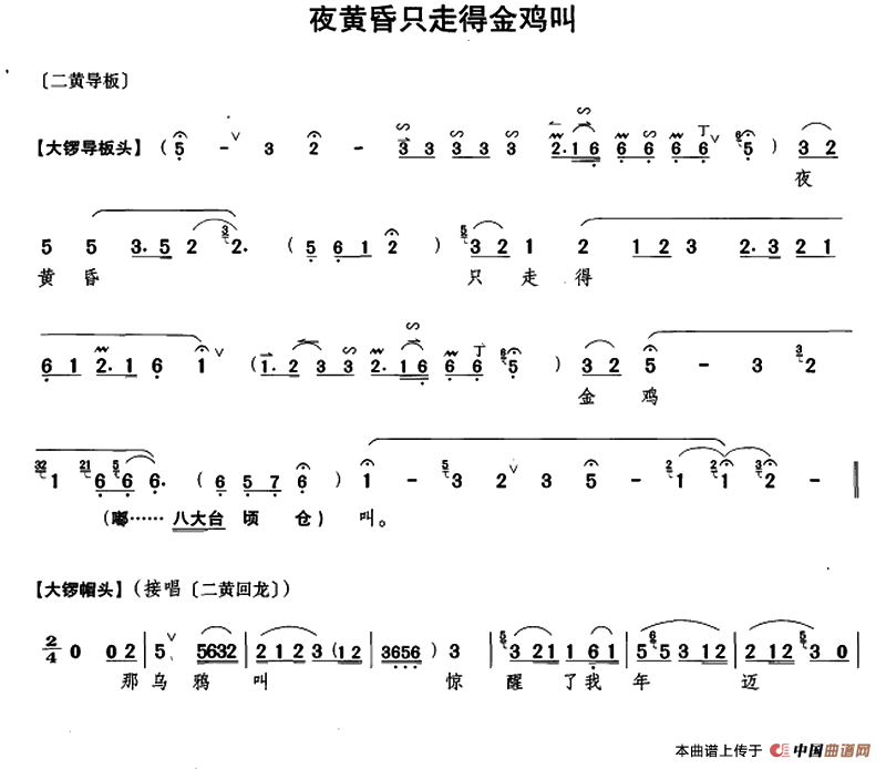 夜黄昏只走得金鸡叫(《行路训子》康氏唱段)相关五线谱