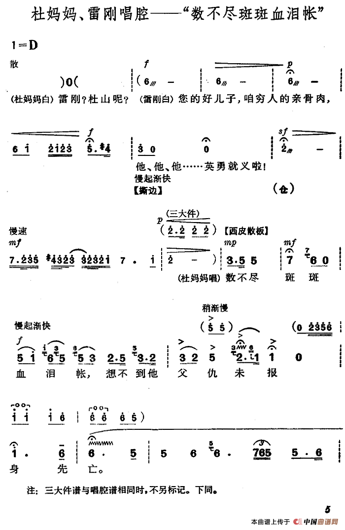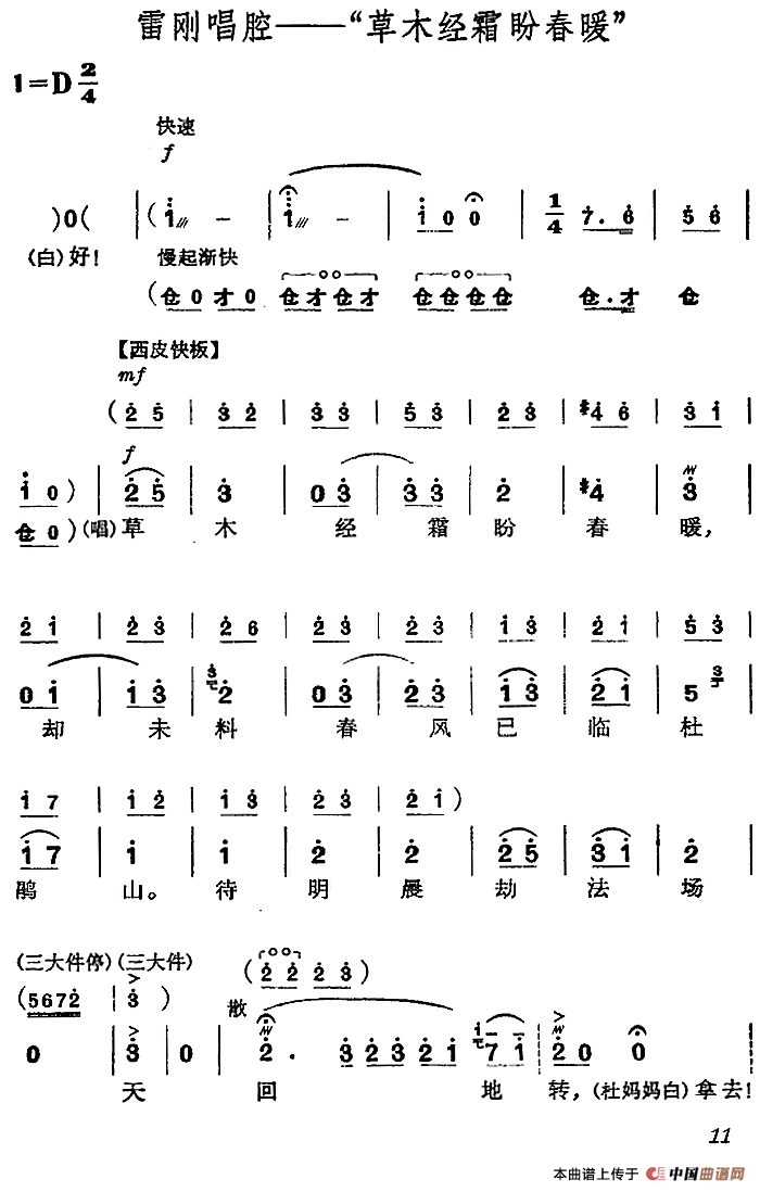 革命现代京剧《杜鹃山》全剧主旋律乐谱之第二场 春催杜鹃