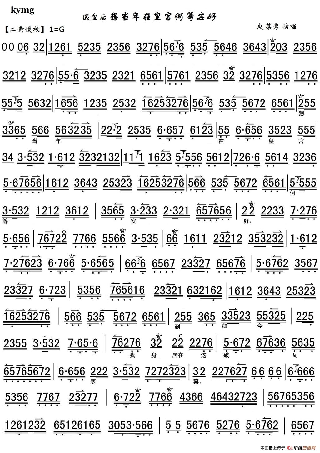想当年在皇宫何等安好(《遇皇后》选段、琴谱)