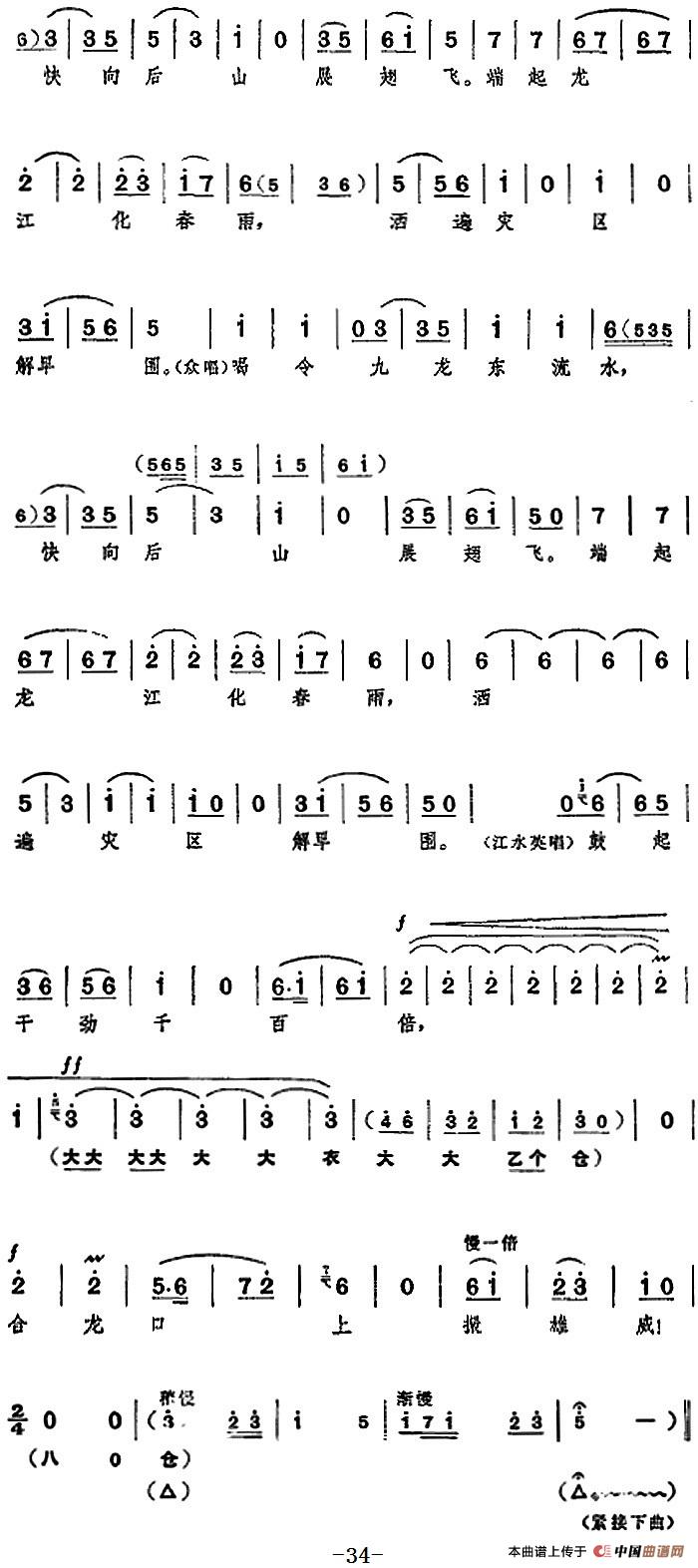 革命现代京剧《龙江颂》全剧主旋律乐谱之第五场 抢险合龙