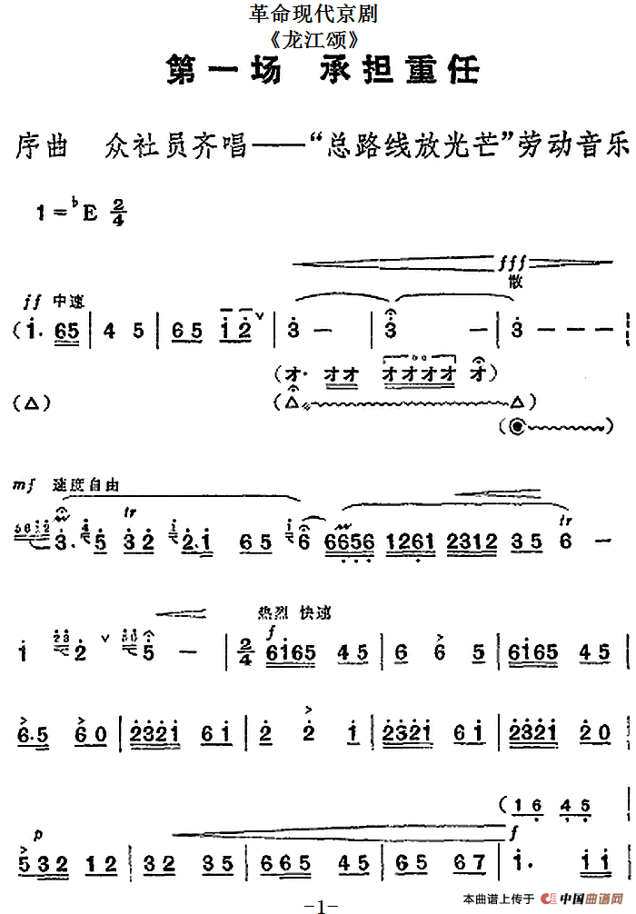 革命现代京剧《龙江颂》全剧主旋律乐谱之第一场 承担重任