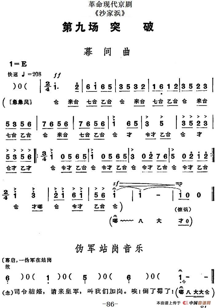 革命现代京剧《沙家浜》全剧主旋律乐谱之第八场 奔袭