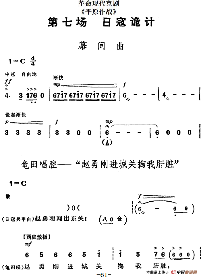 革命现代京剧《平原作战》全剧主旋律乐谱之第七场 日寇诡计相关五线谱