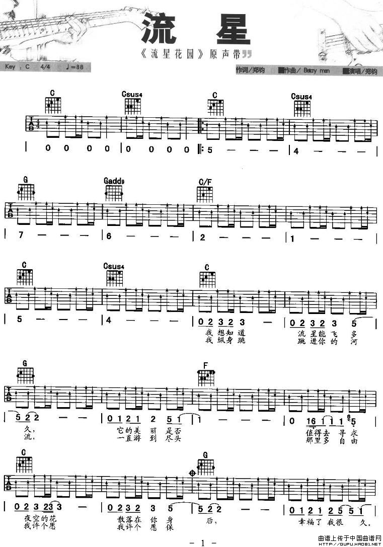 流星(版本三)相关五线谱