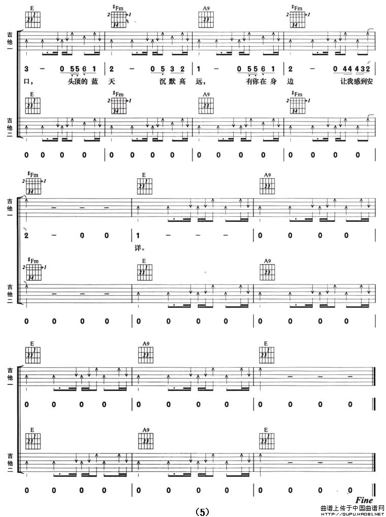 朴树《平凡之路》吉他谱(双吉他精华版)