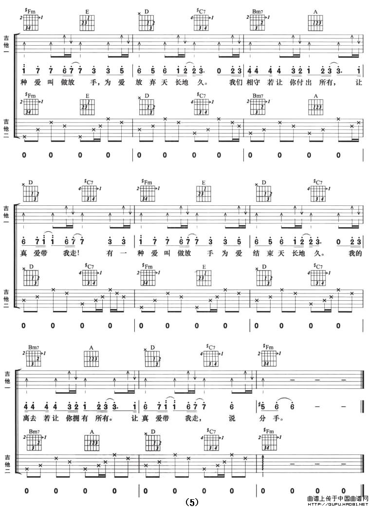 有一种爱叫做放手(双吉他)相关五线谱