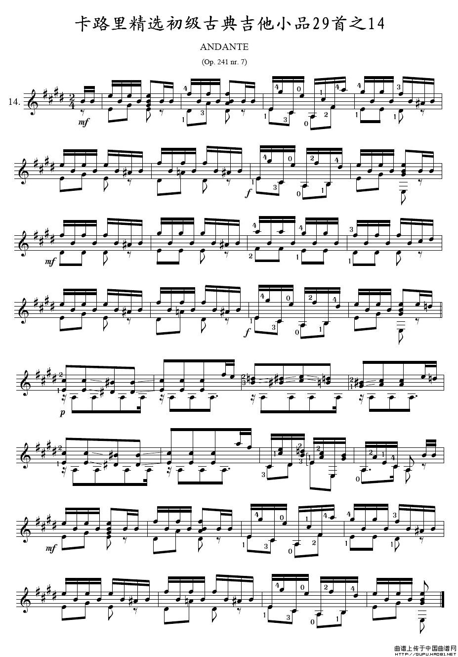 卡路里精选初级古典吉他小品29首之14相关五线谱