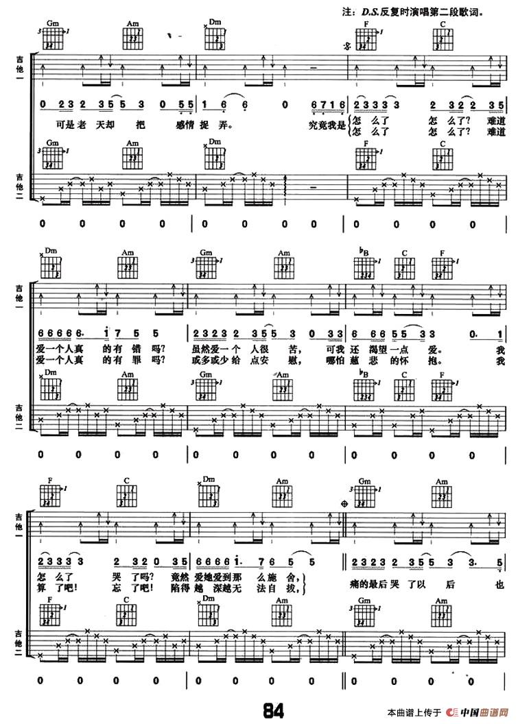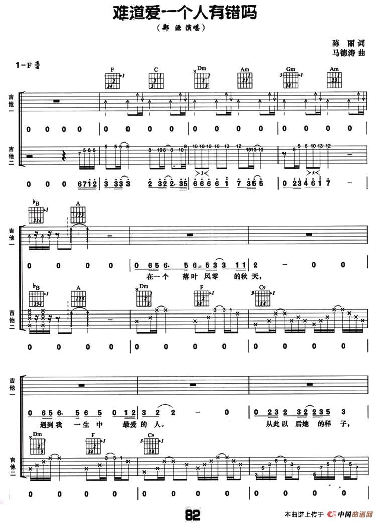 难道爱一个人有错么(双吉他)相关五线谱