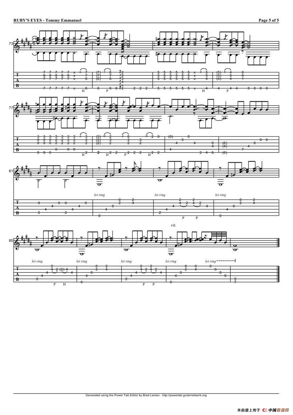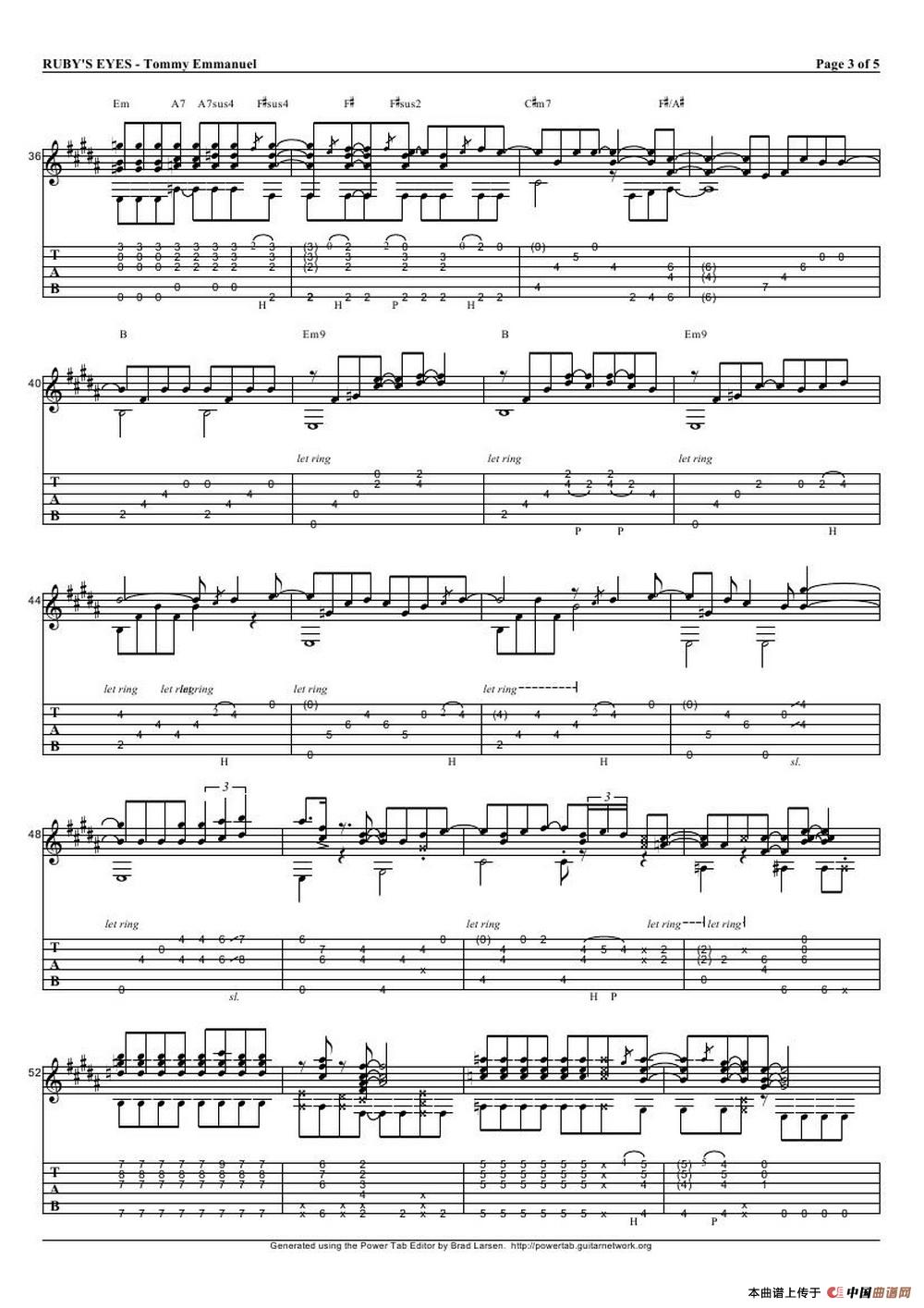 tommy emmanuel: rubys eyes(指弹吉它)相关五线谱
