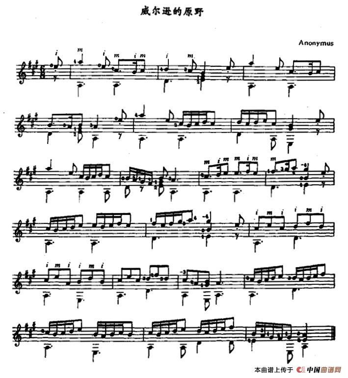 威尔逊的原野(古典吉他)相关五线谱