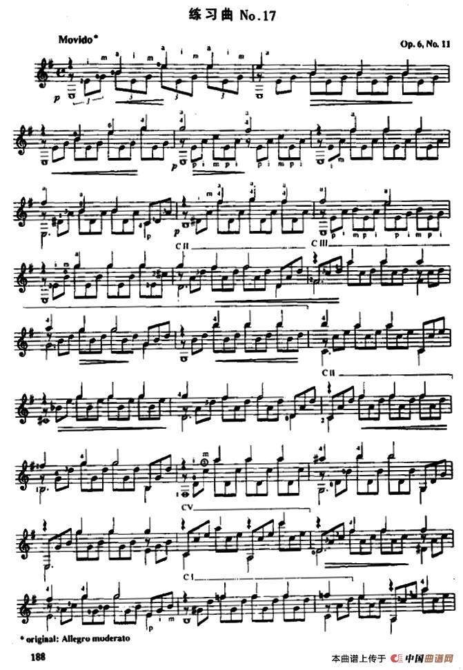 费尔南多·索尔 古典吉他练习曲 No.17(Op.6 No.11)相关五线谱