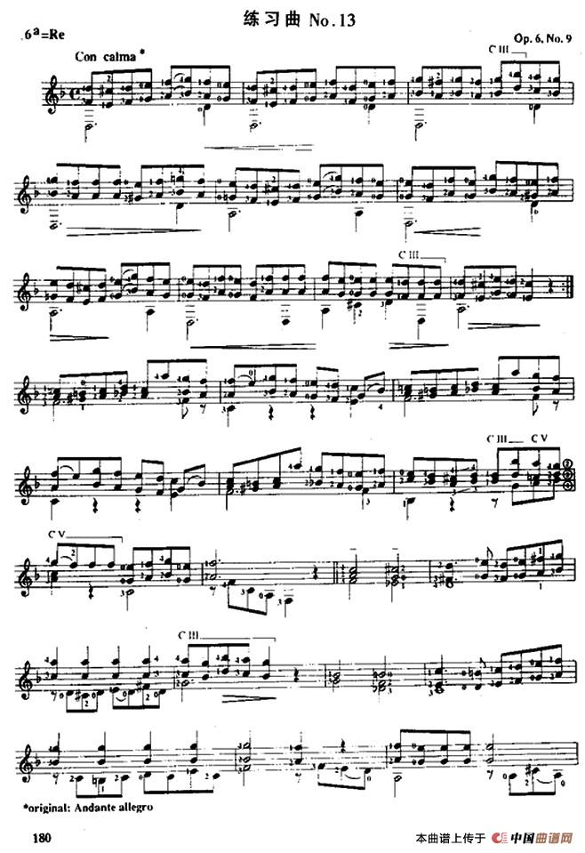 费尔南多·索尔 古典吉他练习曲 No.13(Op.6 No.9)相关五线谱
