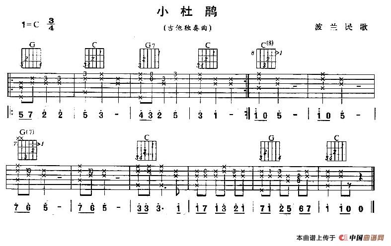 小杜鹃(波兰民歌、独奏曲)相关五线谱