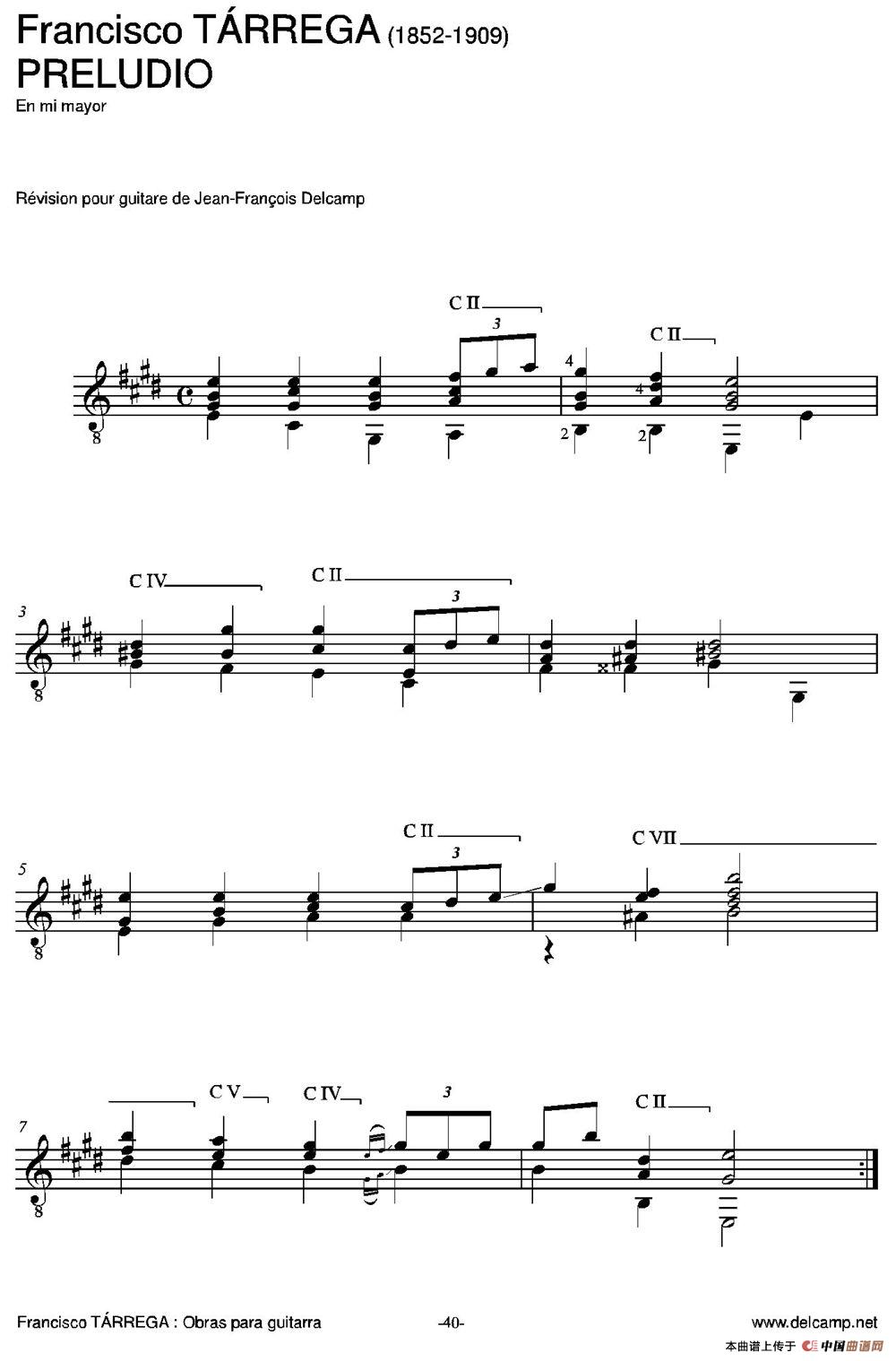 PRELUDIO(En mi mayor)(古典吉他)相关五线谱