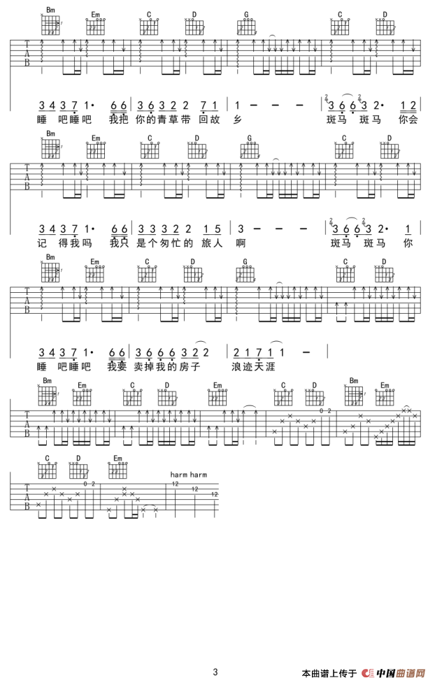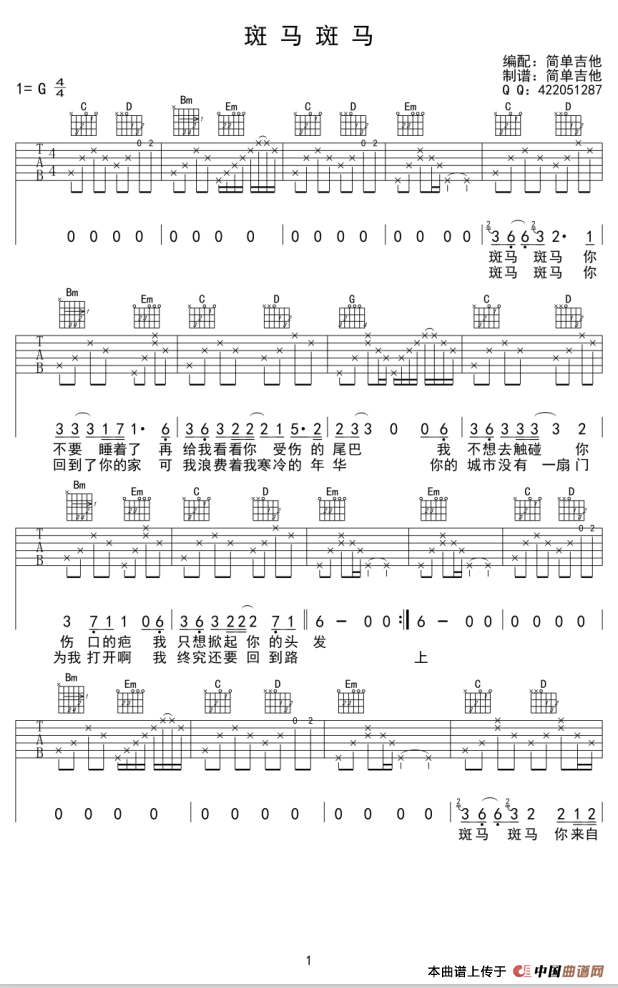 斑马,斑马(吉他谱)