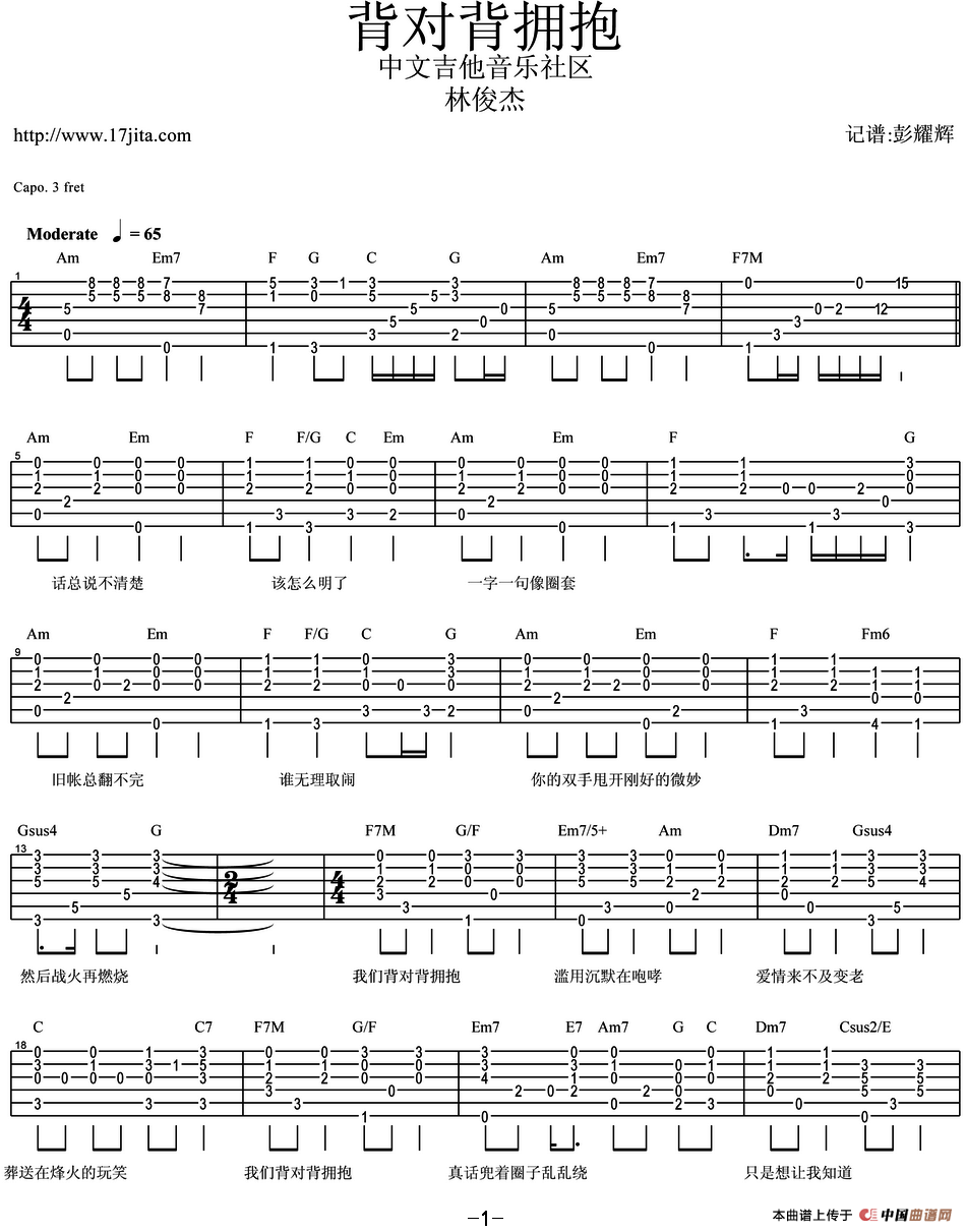 背对背拥抱相关五线谱