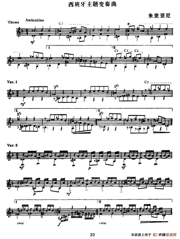 西班牙主题变奏曲(古典吉他)相关五线谱
