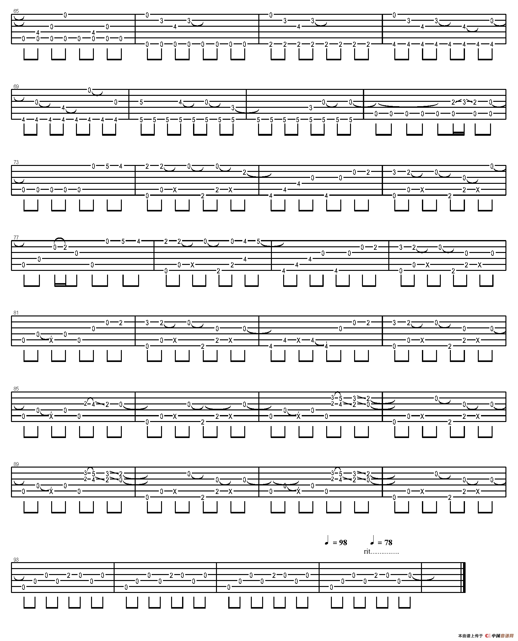 思乡曲(古典版、指弹吉他谱)