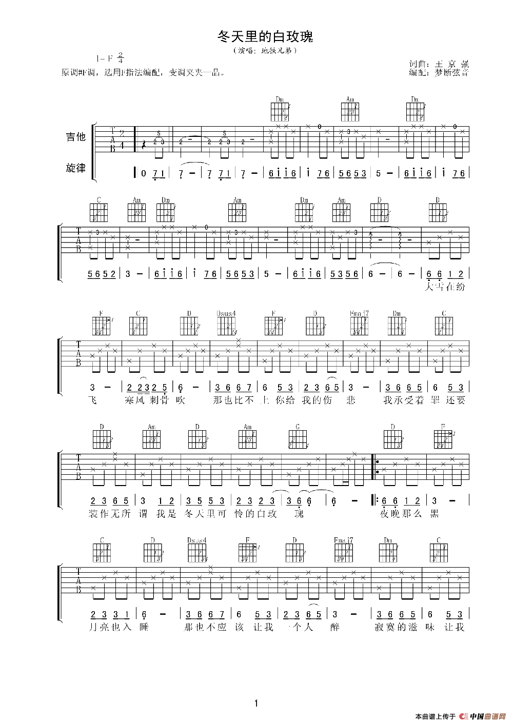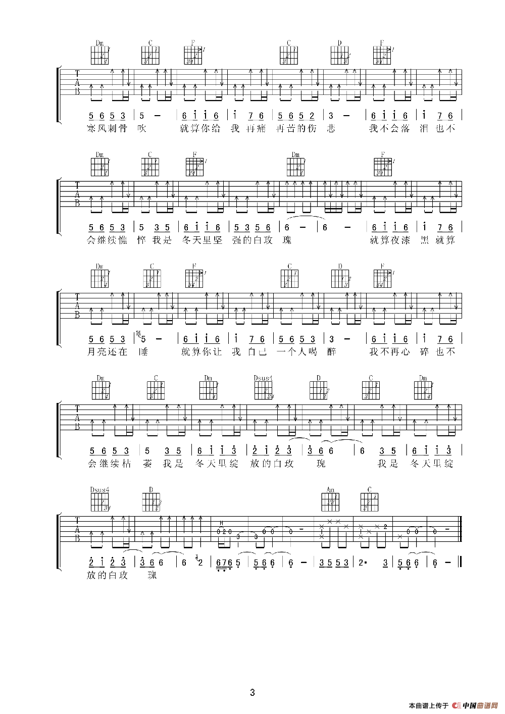 冬天里的白玫瑰相关五线谱