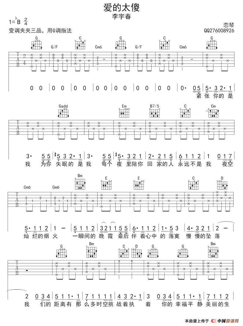 爱的太傻相关五线谱
