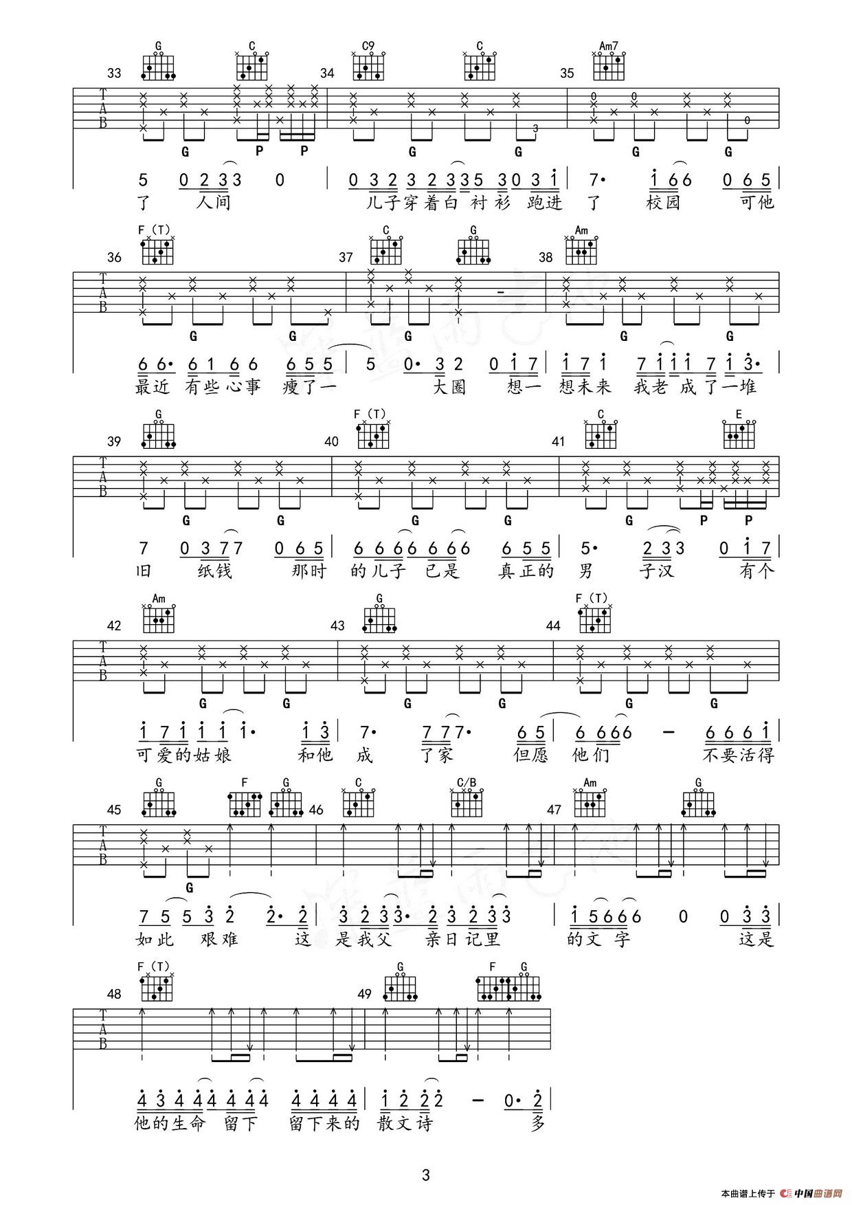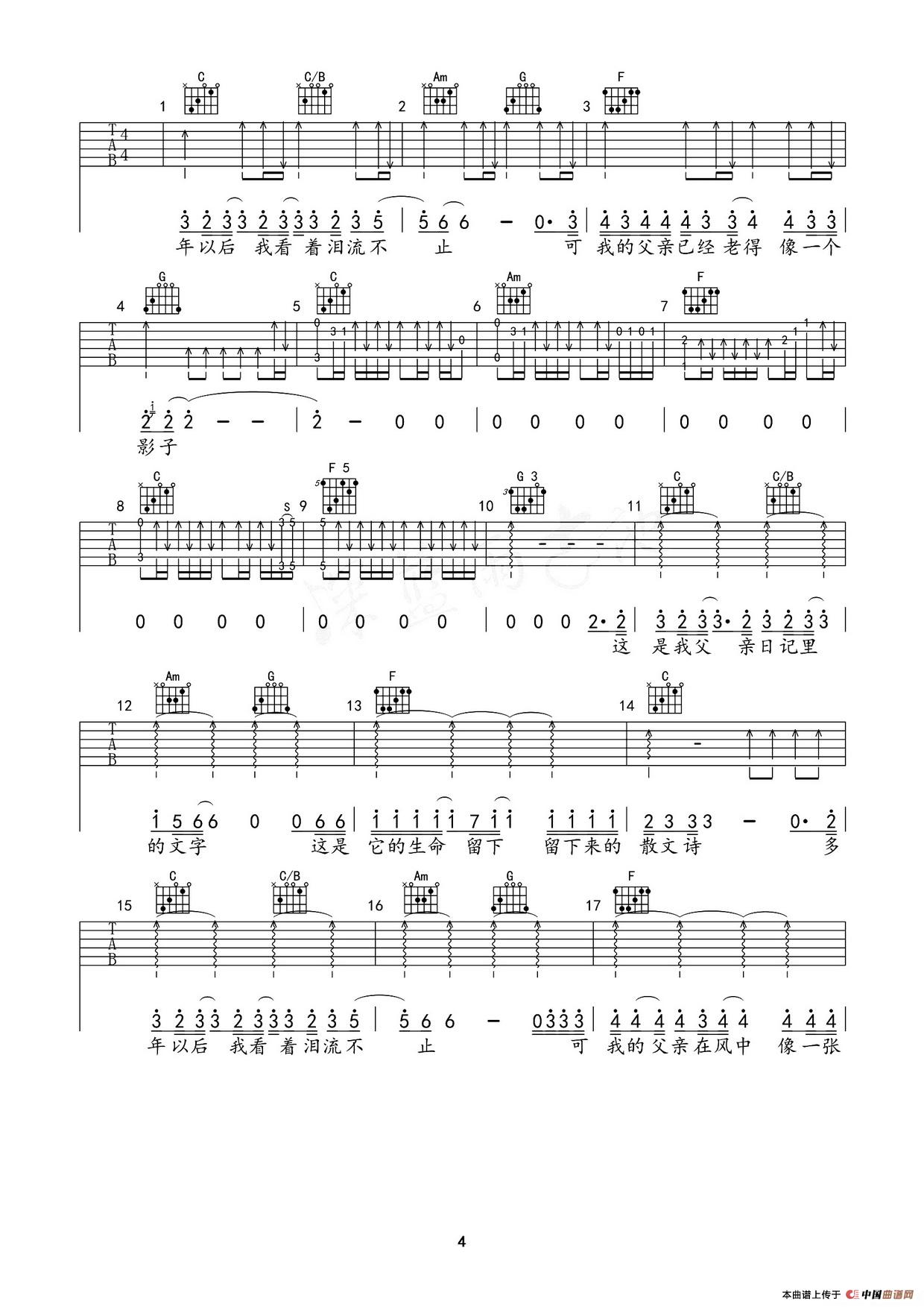 父亲(筷子兄弟演唱版、吉他谱)