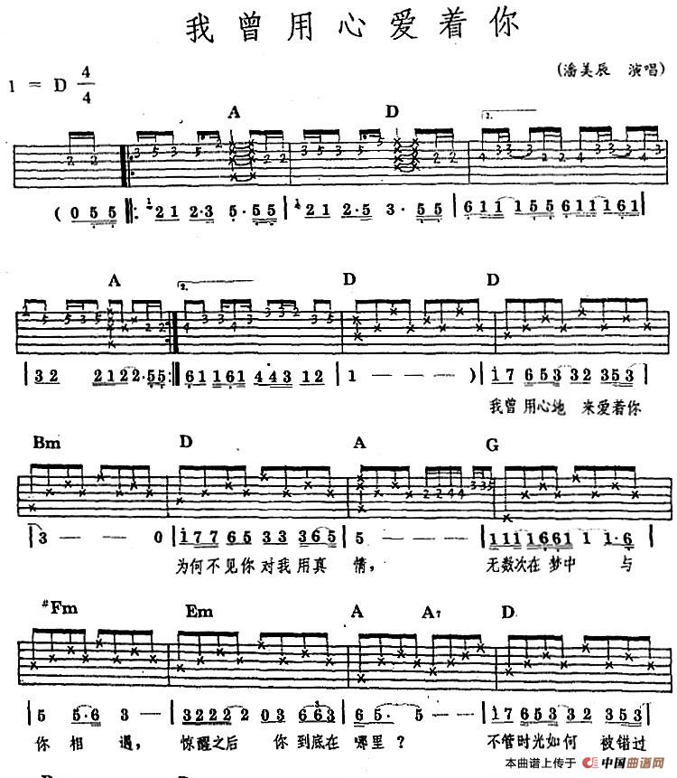 民族吉他弹唱:我曾用心爱着你相关五线谱