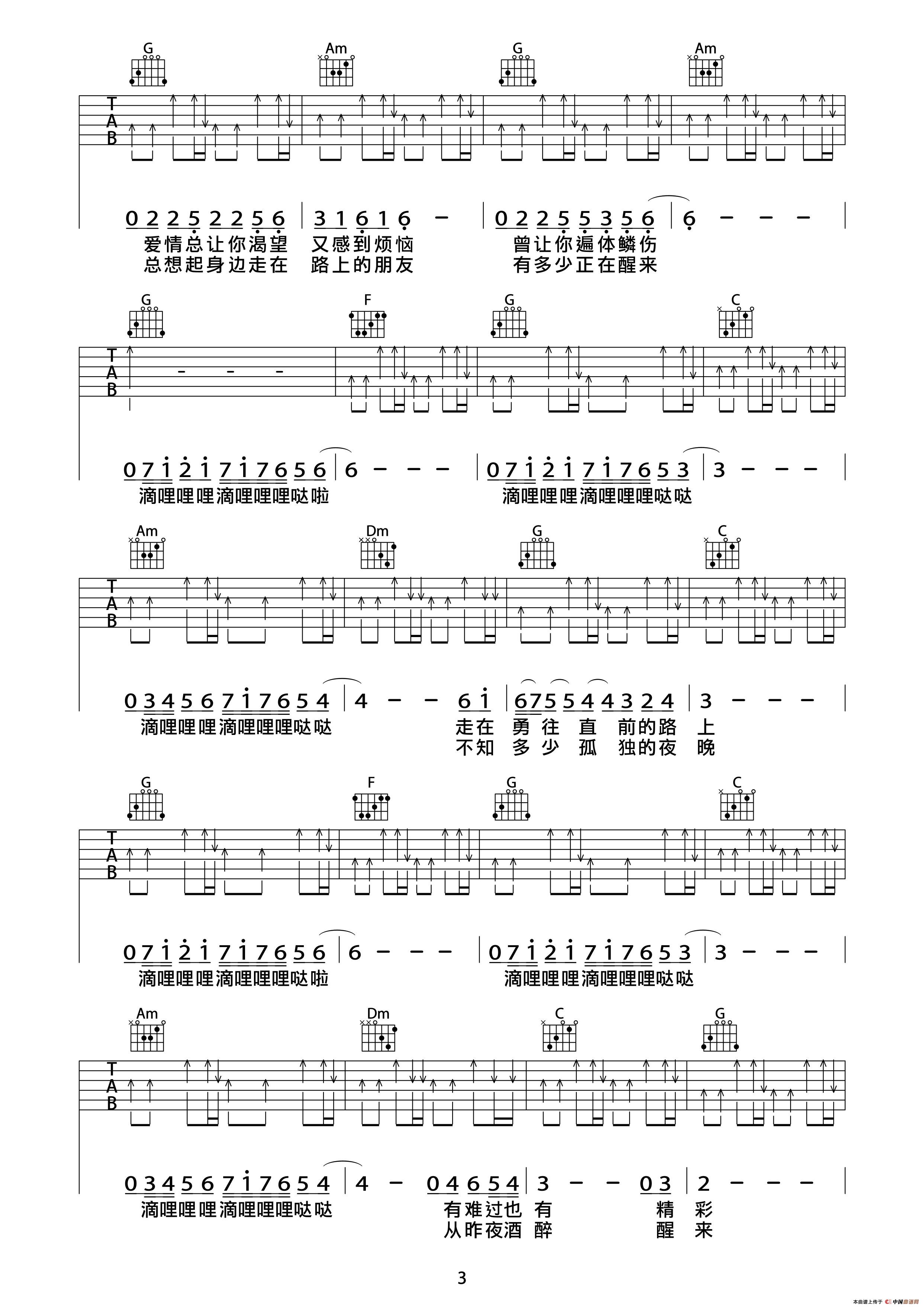 曾经的你(吉他六线谱)