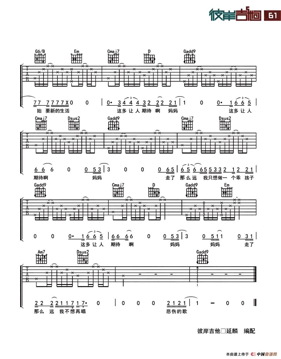 妈妈 我不想再唱悲伤的歌相关五线谱