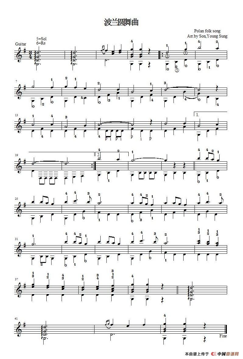 波兰舞曲(吉他独奏、五线谱)