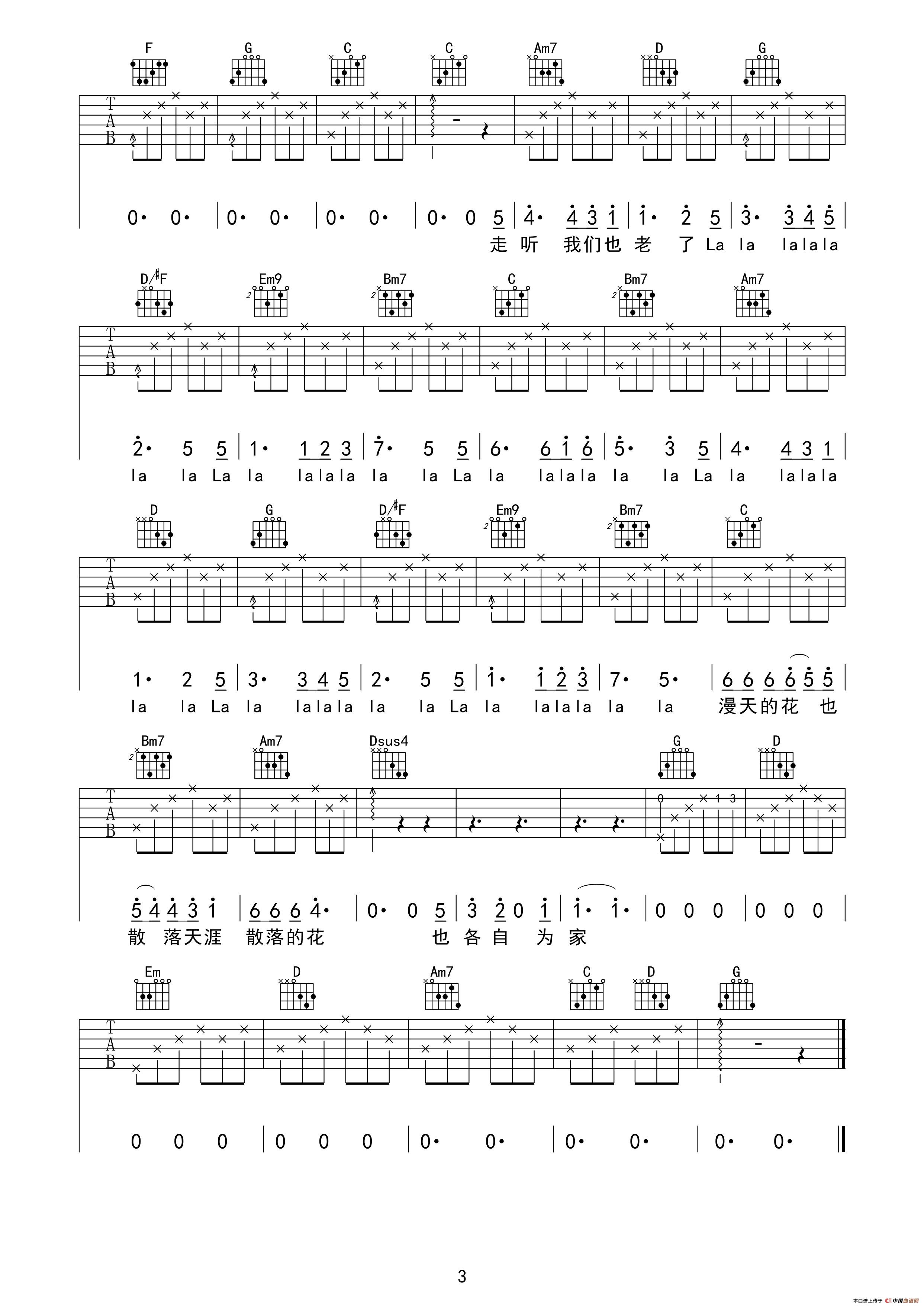 花落知多少(吉他六线谱)