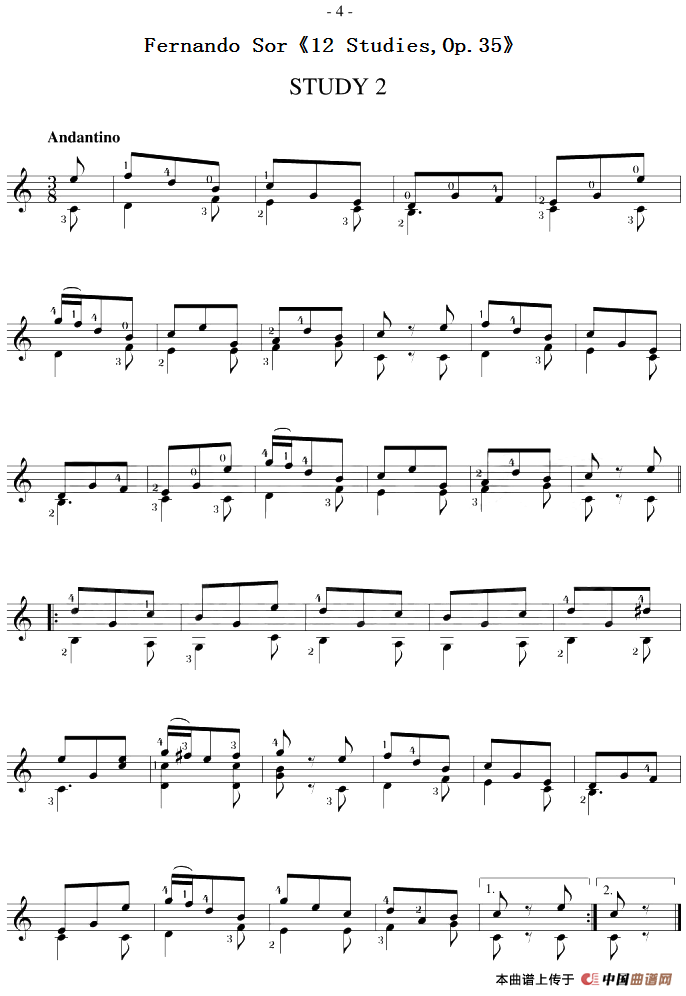 Fernando Sor《12 Studies,Op.35》(STUDY 2)相关五线谱