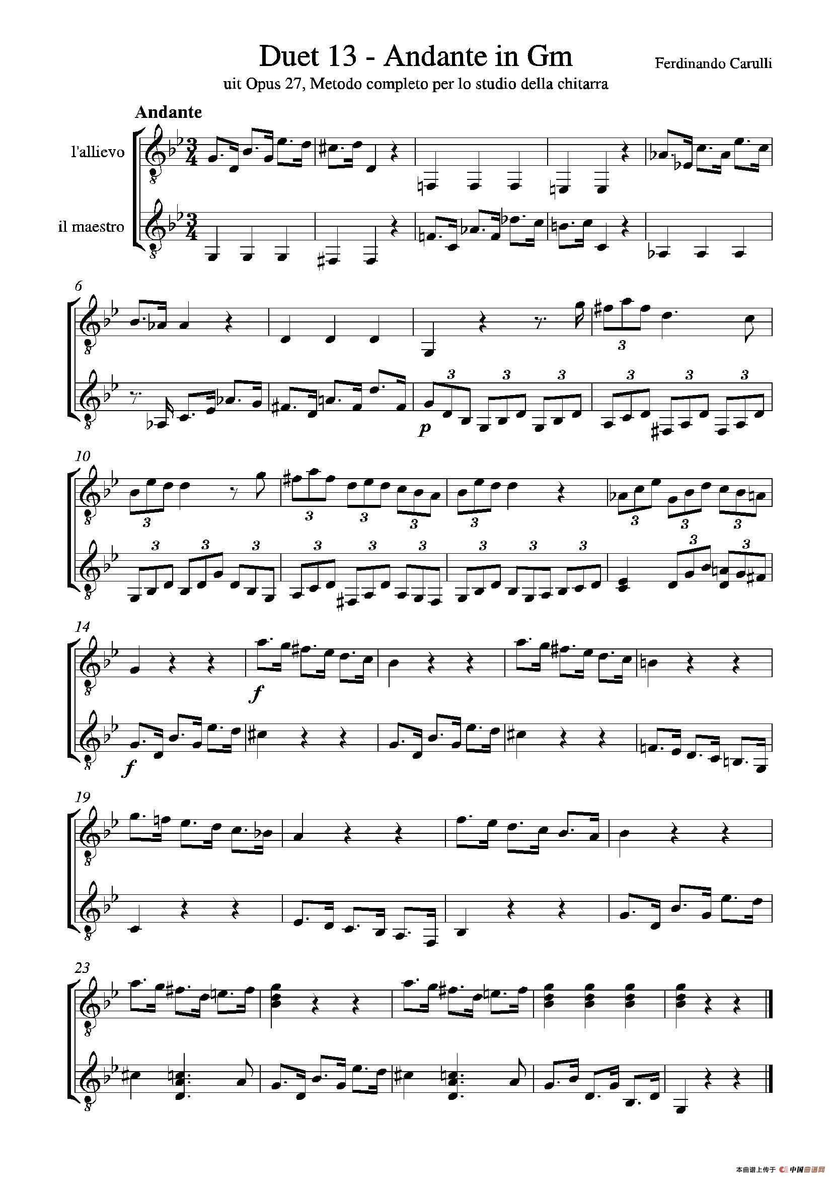 Metodo Completo Op.27-3(古典吉他二重奏练习·13)相关五线谱