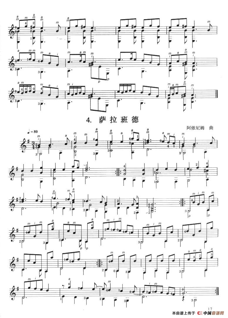 古典吉他考级二级外国乐曲A组(4首)相关五线谱