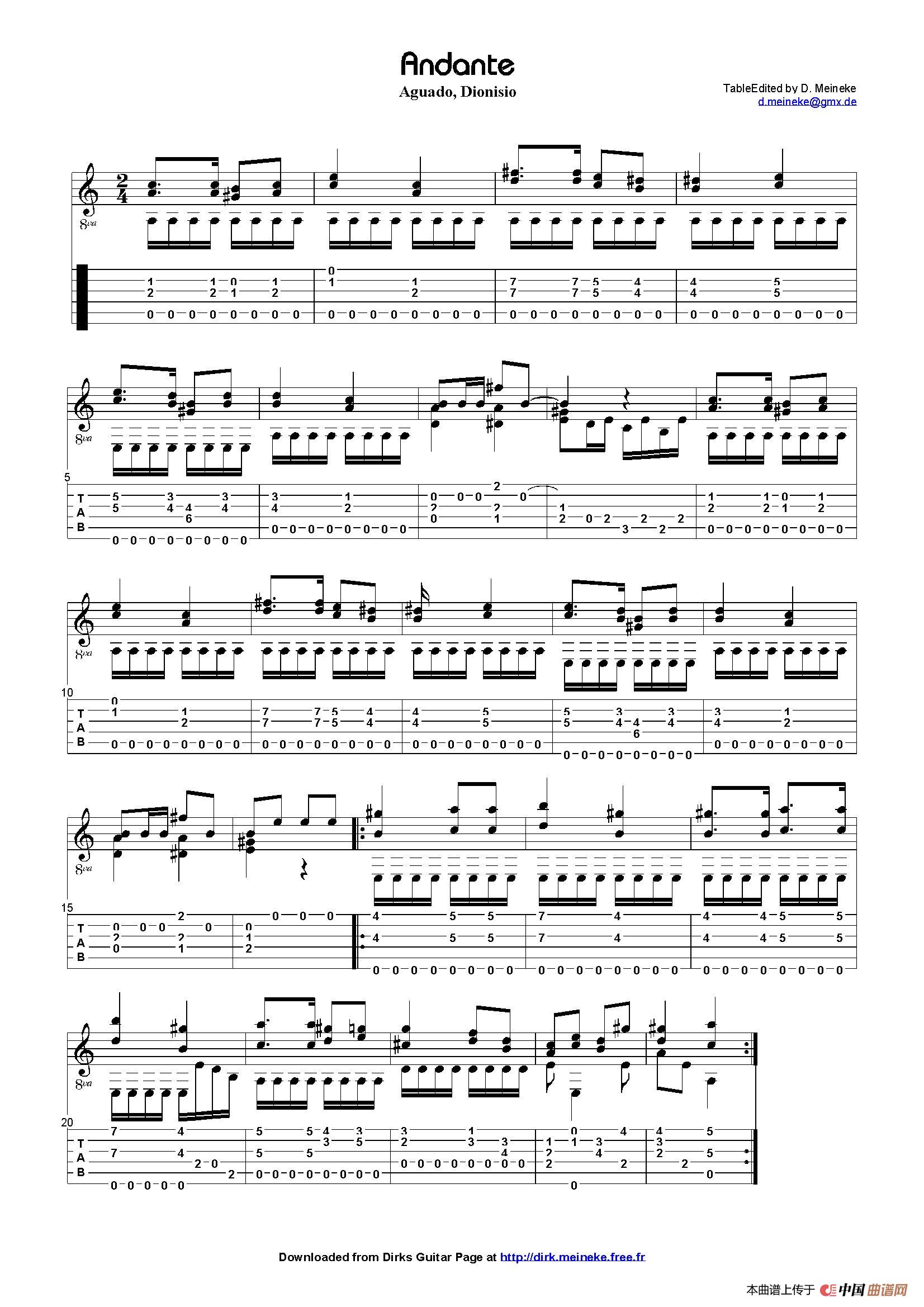 aguado andante 1(古典吉他)相关五线谱