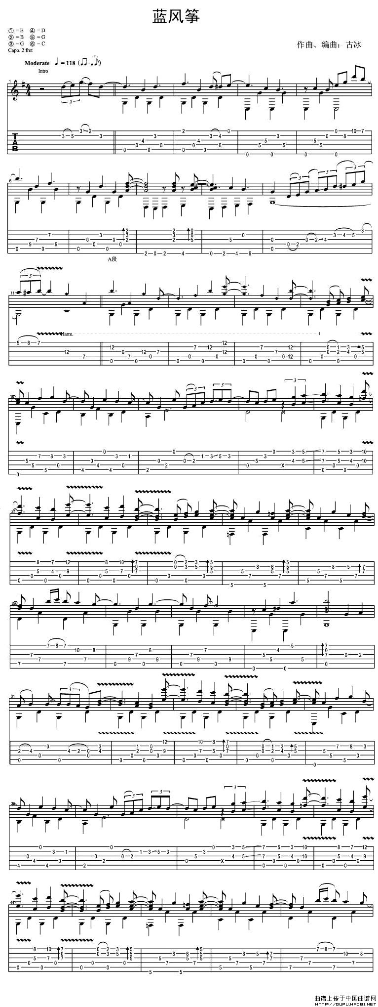 蓝风筝相关五线谱