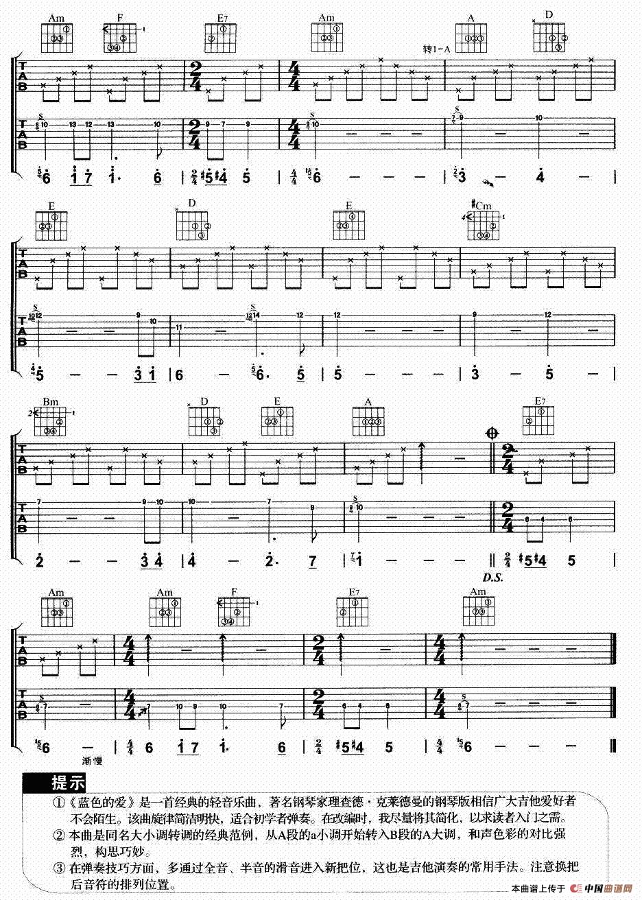 蓝色的爱相关五线谱