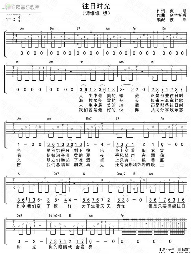 往日时光(克明词 乌兰托嘎曲)相关五线谱