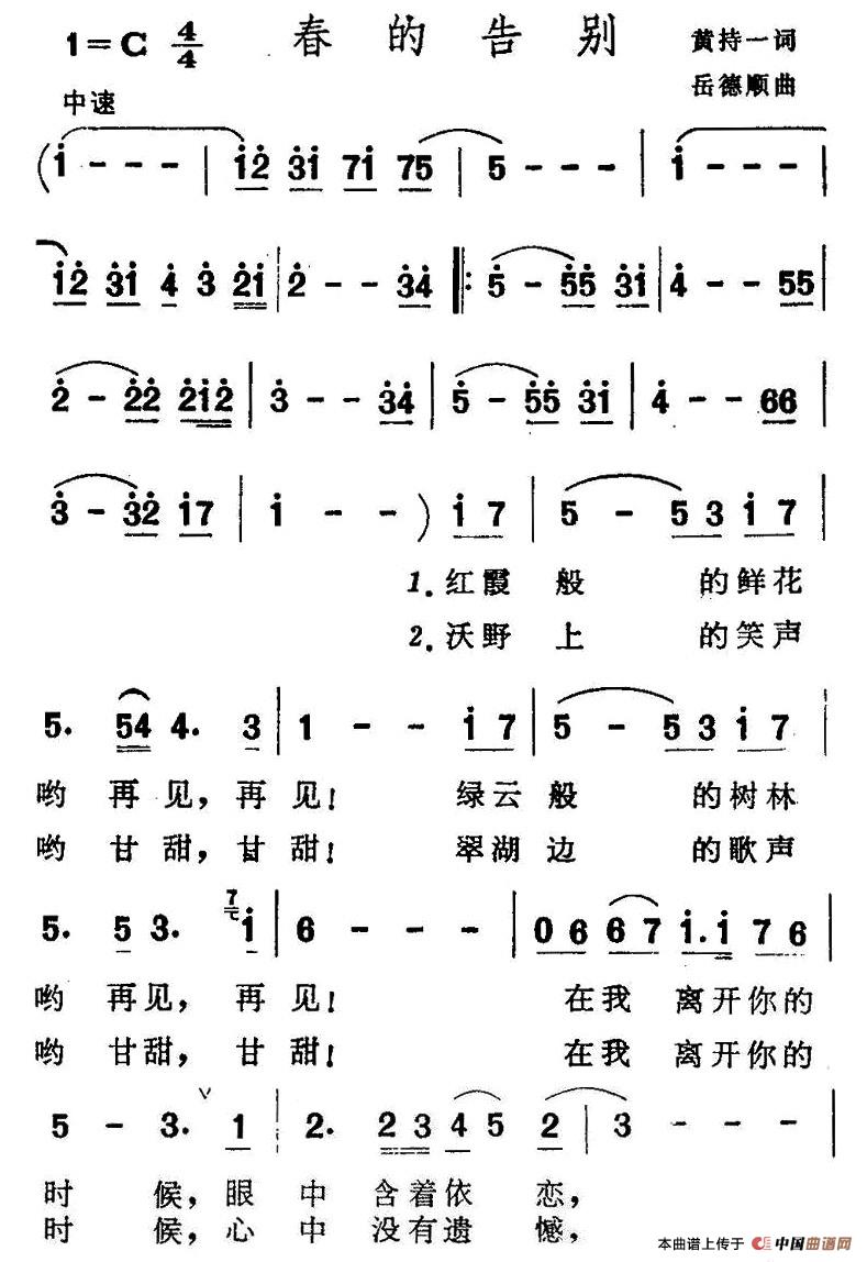 春的告别相关五线谱