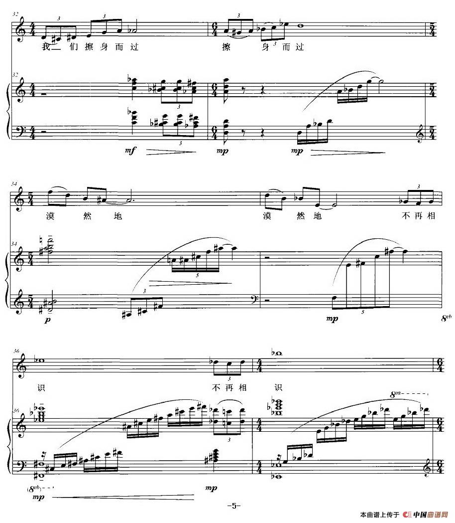 邂逅(席慕蓉词 李凤仙曲、正谱)相关五线谱