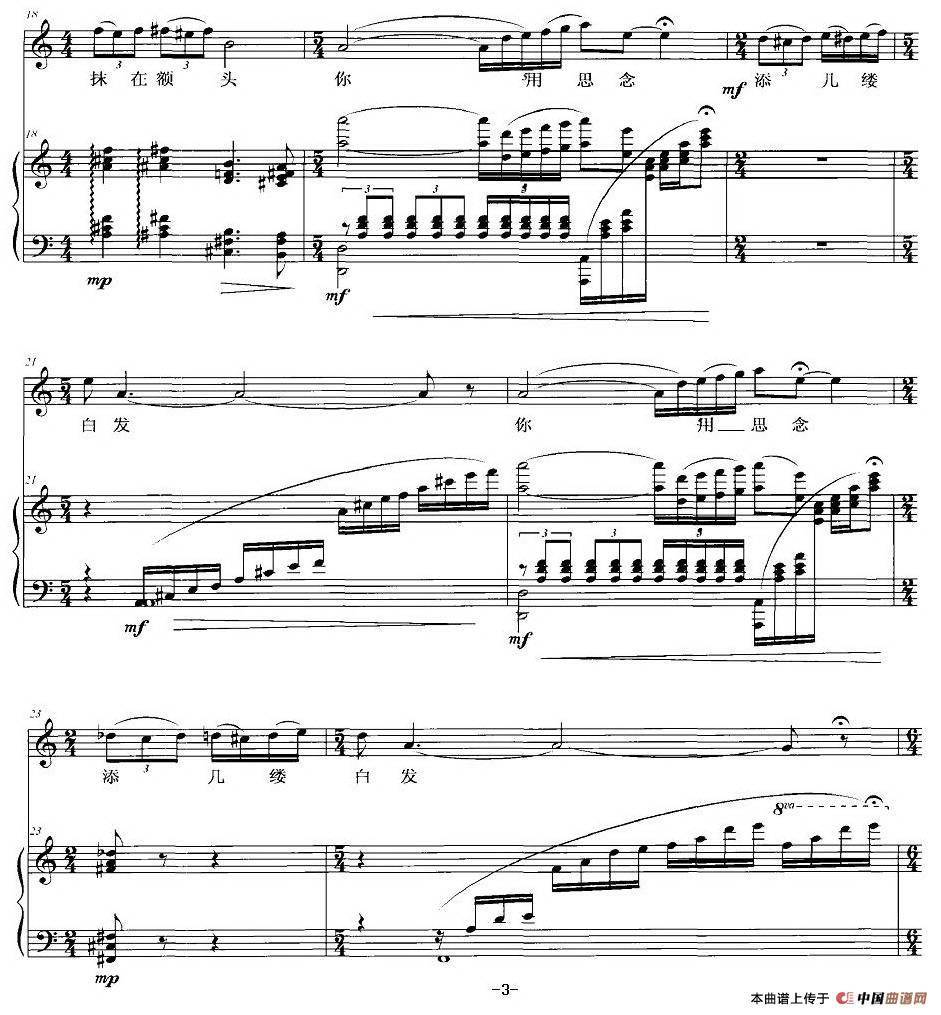 送上我心头的思念(柯岩词 施万春曲、正谱)