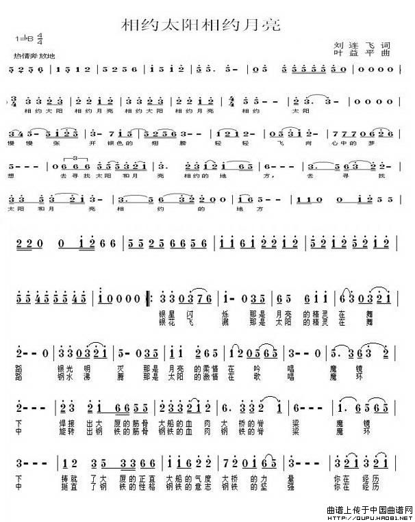相约太阳相约月亮相关五线谱