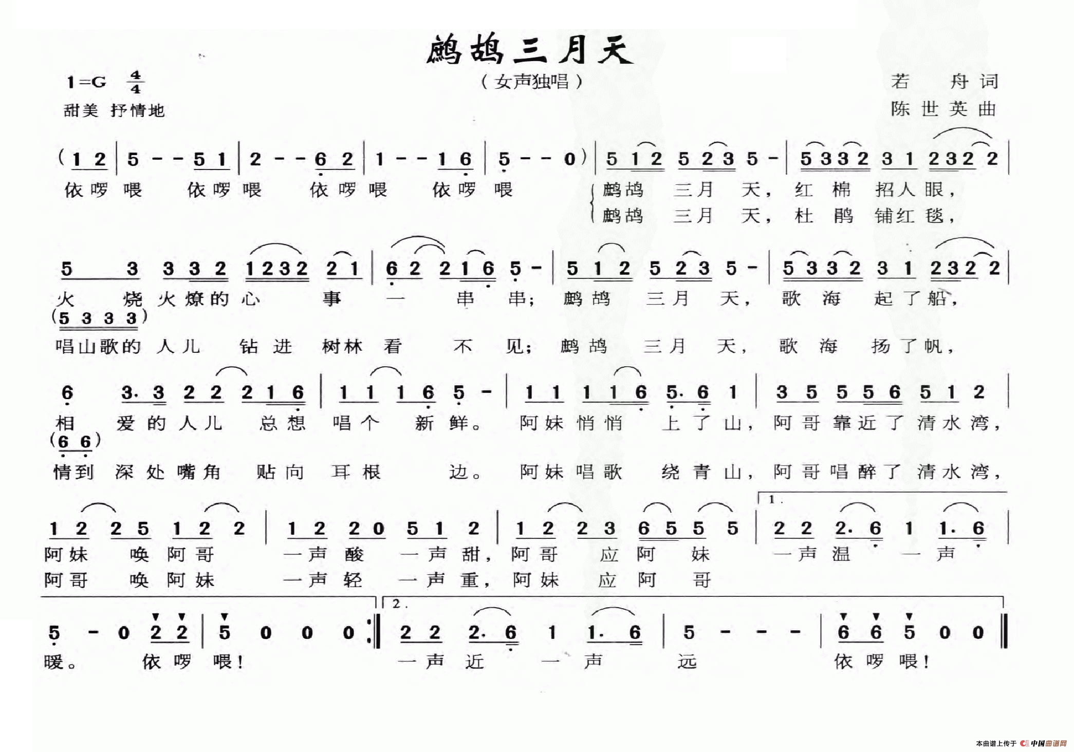 鹧鸪三月天(若舟词 陈世英曲)相关五线谱