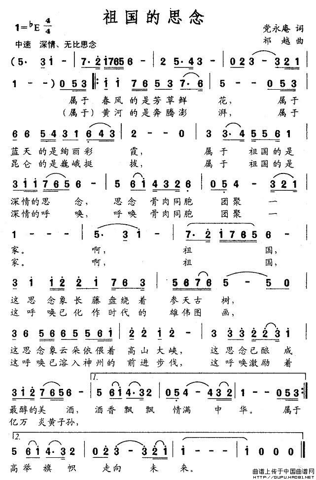 祖国的思念相关五线谱