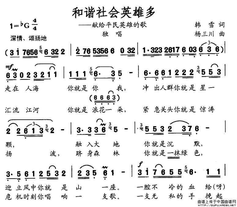 和谐社会英雄多——献给平民英雄的歌相关五线谱